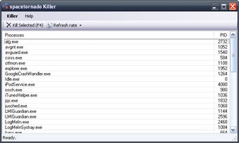 Depois de rodar o arquivo do SpaceTornado Killer, uma janela com o que está em execução no PC aparece na tela. Para fechar o quer quiser, selecione a aplicação, clique em "Kill Selected" ou pressione 'F4'.